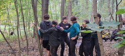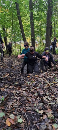hustý challenge! Plazit se po mokré zemi, podlézat klády, brodit se ledovým
