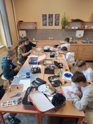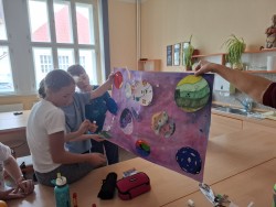 mikroskopování a výtvarné aktivity, třeba barevné obrázky vesmíru a planet byly