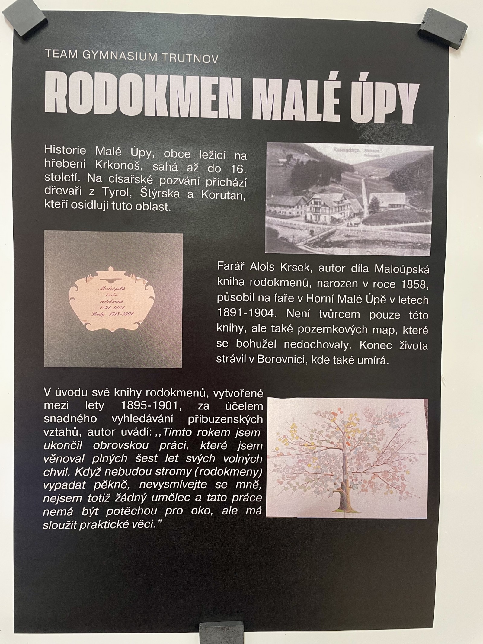 úkoly – osobnosti, domy, události Trutnovska. Třeba rodokmen obce Malé Úpy,