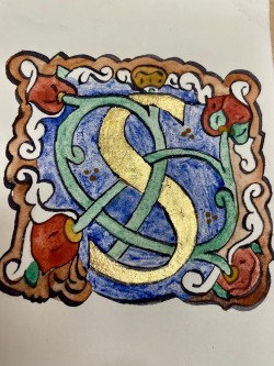 zdobili iniciály. Také jsme psali na pergamen, používali starodávná brka,