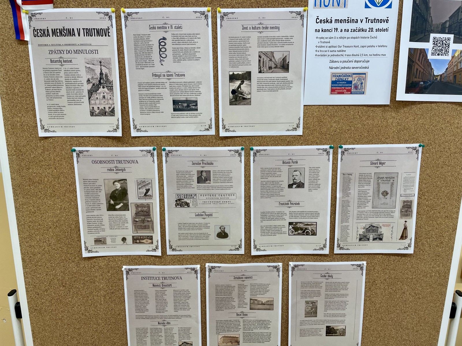Broumova. A pak už jsme vyráběli plakáty do učebny dějepisu. Přiblížily naše badatelské