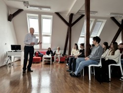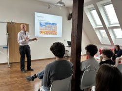 V úterý 25. listopadu 2025 měli studenti možnost besedovat s mnohaletým pracovníkem Evropské Komise panem Martinem Pávem. Z jeho poutavého vyprávění se dozvěděli zajímavé informace o životě v Bruselu a Dánsku, o přitažlivosti práce v EK, finančních možnostech či jak uspět při konkurzech na pracovníky EU. Zazněla řada cenných nápadů a rad, jak si naplánovat svoji profesi, kariéru.
