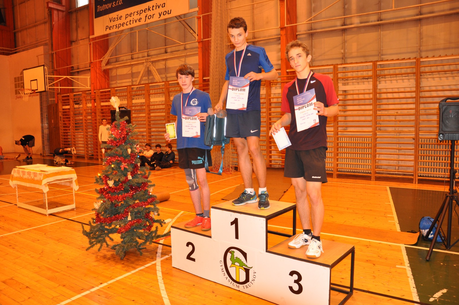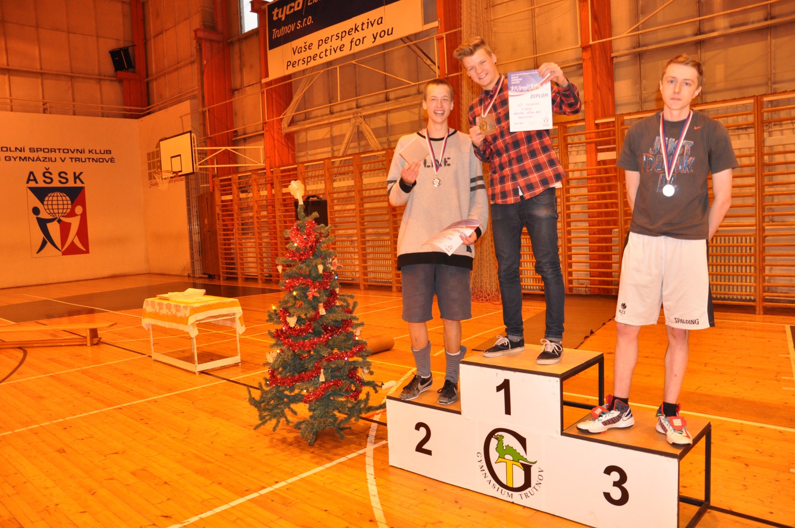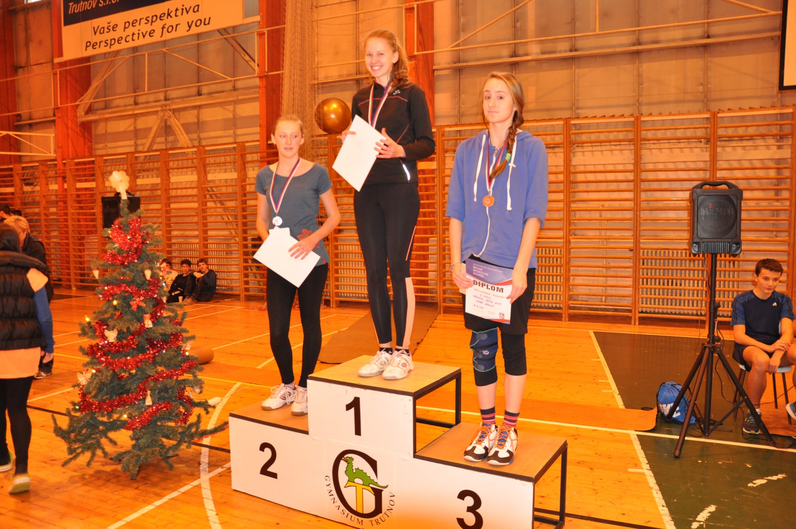 Vánoce vánoce přicházejí ... a s nimi také tradiční předvánoční sportovní akce. Na naší škole to je Sportovní den nižšího gymnázia (21. 12) a Vánoční laťka (18.12.), což je přebor školy ve skoku vysokém. Ta byla opět velice povedená. Potěšila účast 65 studentů, což svědčí o popularitě této soutěže. A za pozornost stojí i výkony, které opět přepisovaly historické rekordy. V kategorii starších žáků zvítězil tercián Šimon Drašar skvělým výkonem 175 cm. Tímto výkonem by s přehledem vyhrál i kategorii vyššího gymnázia ! Ozdobou letošního ročníku byla účast Lady Pejchalové - bronzové výškařky z letošního atletického mistrovství světa juniorů v Kolumbii. Tato studentka ze sexty našeho gymnázia vítězí na Vánoční laťce pravidelně už šest let. Ještě v primě to byla nenápadná dívka, která však už tenkrát na sebe upozornila výborným odrazem a technikou skoku. Trénink v trutnovském atletickém oddílu zúročovala i v dalších letech. Posouvala rekordní výkony Vánoční laťky, školu skvěle reprezentovala na středoškolských přeborech, získávala medaile na mistrovství republiky. Letošní fantastický úspěch na MS je zatím vrcholem kariéry této nadějné atletky. Svoji suverenitu Lada potvrdila i na letošní Vánoční laťce. Zvítězila skvělým výkonem 182 cm. Pokusy o vylepšení osobního rekordu na 186 cm pak shazovala jen velmi lehce. Diváci, kteří zaplnili tribuny do posledního místečka, vytvořili perfektní atmosféru. Odměnou jim byly výkony těch nejlepších. Tak ať se jim i všem ostatním daří i v příštím roce. A nejen v atletice. Hezké vánoce a úspěšný rok 2016.