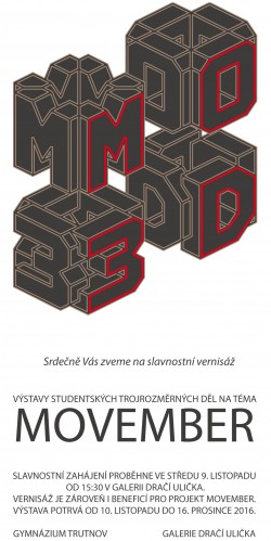 Srdečně Vás zveme na čtvrtý ročník výstavy studentského výtvarného projektu, který hledá inspiraci v osvětové akci Movember.